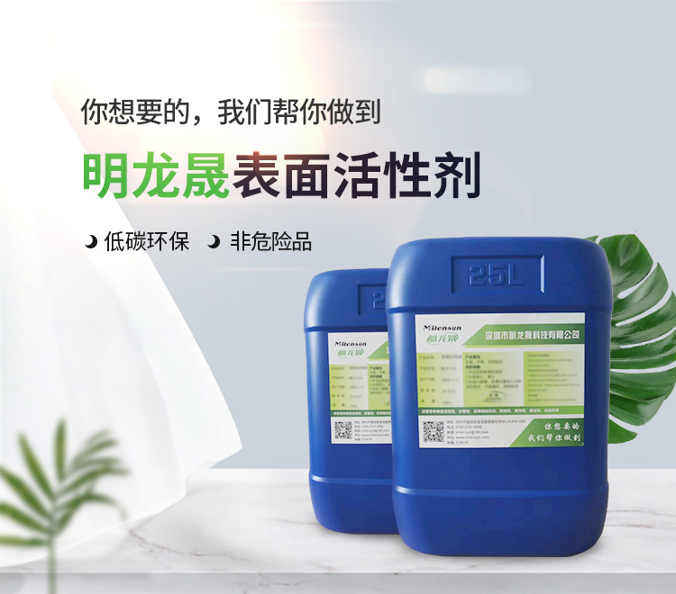 Milensun明龍晟,2021年成立于中國深圳,公司致力于校研成果轉換、深化校企合作發(fā)展、公司擁有一流的研發(fā)隊伍、多名高精尖人才匯聚于此,是一家集研發(fā)、生產、銷售為一體的創(chuàng)新型企業。主要生產工業清洗表面活性劑,商用清洗表面活性劑,低泡表面活性劑,無磷表面活性劑,防銹劑,增溶劑,壓鑄鋁拉白劑等產品。
